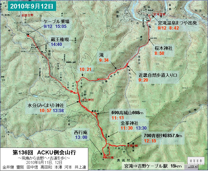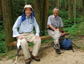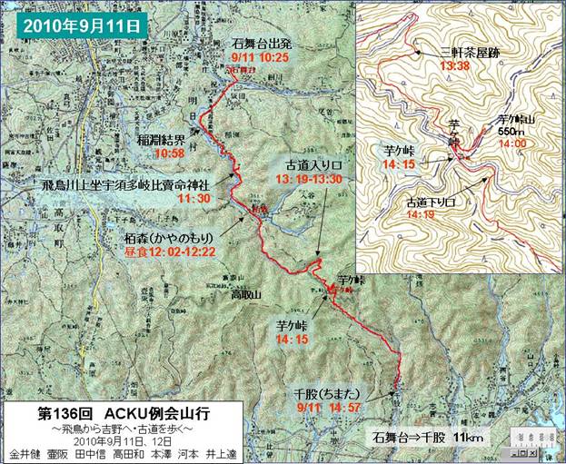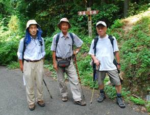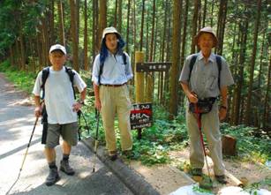自動車道路から外れて登山道に入ったのは壷阪さん、河本さん、井上そして金井さんの4人。本澤さんを待って地蔵さんで待機した田中さん、高田さんは本澤さんと合流した後にヒッチハイクで千股(ちまた)まで先行した。