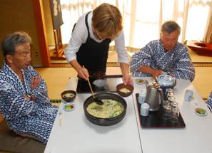 朝食は7時半にお願いしていたが、美味しい鮎粥が出来上がったのは7時45分だった。しかし、美味しい粥に約束の時間を過ぎたことなど忘れてお代わりした。