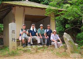 戻って西行庵に立ち寄る。谷筋には苔清水と名うった小さな流れがあった。西行庵の水場だったのだろう。今は渇水で流れは細い。ペットボトルに詰めて持ち帰ることにした。