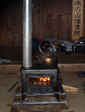 新しいスト−ブは覗き窓が大きく明るい感じがします。煙突の性能が良ければ小屋は快適になったことと思います。