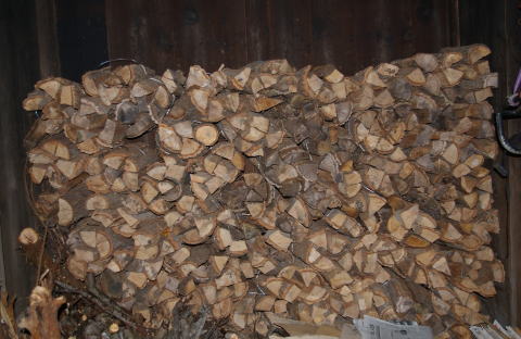↑ たっぷりと積まれた薪の山