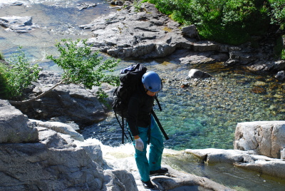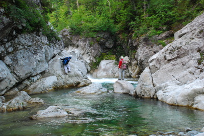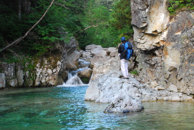 赤木沢を覗く山川君 |
