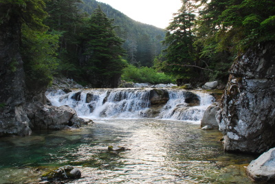 小滝が連続する連瀑は明るく楽しい。ついつい早足になってしまう。 |