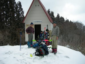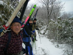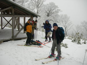 例年なら氷ノ山国際スキ−場のリフトを利用してスキ−場の上部まで登りそこからスキ−で登り始める。この年は極端に雪不足であった。