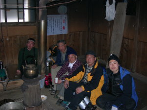 千本杉ヒュッテでくつろぐ神戸大学山岳部・山岳会の面々