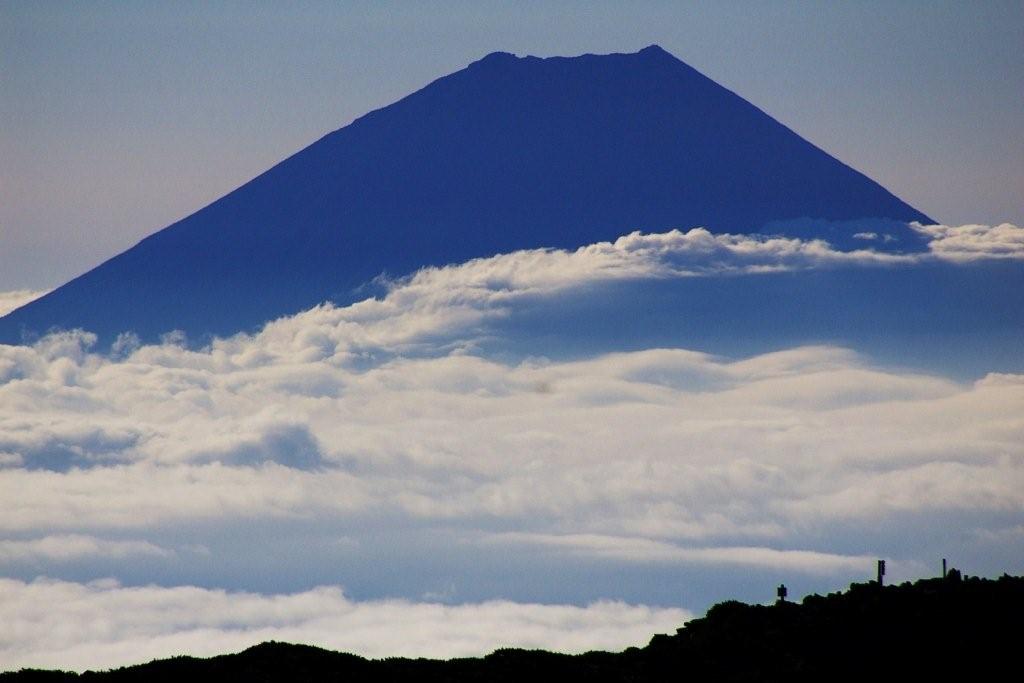 写真-2 西農鳥岳の手前ピークから雲海に浮かぶ富士山を望む