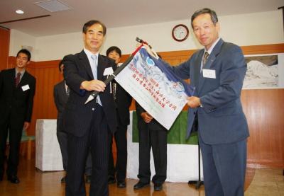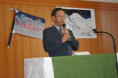 石田廣史副学長より合同学術登山隊の隊旗授与