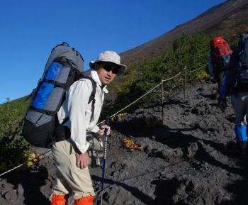 水が重いザックを背に |