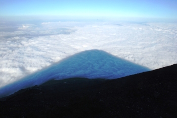 16) 夕日にシルエットを雲海に写す富士山