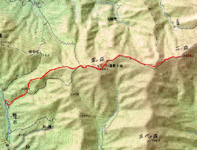 登山ル−ト 梅ケ市 ⇒ 主稜線 ⇒ 堂ケ森1689m ⇒ 二ノ森1929m ⇒ 堂ケ森 ⇒ 梅ケ市