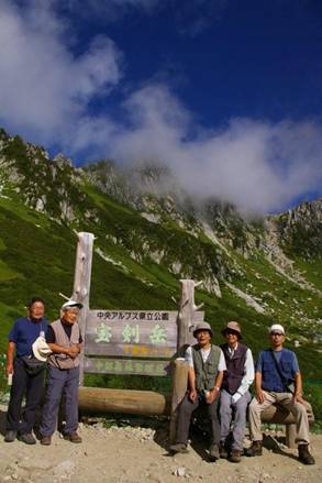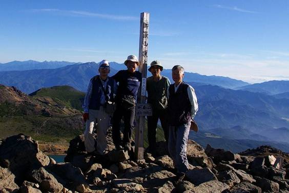ここ数年来、井上薫兄がシニアメンバーによる夏山縦走を企画してくれた。最初は2006年8月の蓼科山・八ケ岳縦走(赤岳〜横岳〜硫黄岳)でした。次は2年後の2008年8月の南アルプス白峰三山縦走(特4回)、2009年8月の西穂高〜奥穂高〜槍ケ岳縦走(第133回)と続きました。幸いにも無事故で踏破出来、お互いに健康長寿を寿いできました。今夏の御嶽山・中央アルプス縦走も井上薫兄による企画でしたが、出発前にご親族にご不幸があり、残念ながら参加を断念されました。 今回、私は御嶽山頂上で72歳の誕生日(8月29日)を迎えられるというご縁に感謝し、参加を決断しました。