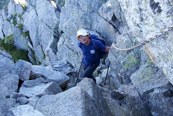 次なる目標の熊沢岳の登りは鎖場の連続だった。段々疲れが溜まってくる。俗に熊沢五峰と呼ばれるピークのアップ・ダウンは息絶え絶えであった。
