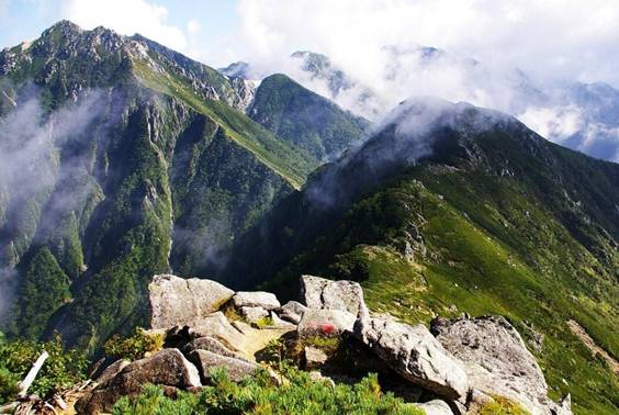 下りは難ルートとの説明だったが、岩場には真新しい鎖が充実しており、安心して下降できた(7:15)。極楽平を抜け島田の娘頭までは緩やかな尾根筋の楽な登りだったが、下りからは痩せ尾根に一変し、西穂岳から奥穂岳レベルの難度となった。濁沢大峰の鞍部で大休憩し、和三兄からインスタントラーメンを馳走して頂く。元気を取り戻し、2つの岩峰をアップ・ダウンして中間地点の檜尾岳に着く(11:30)。