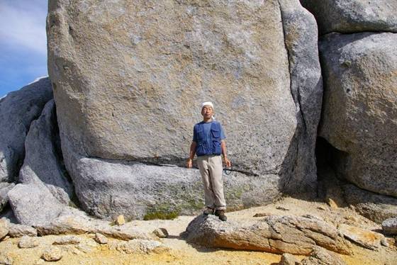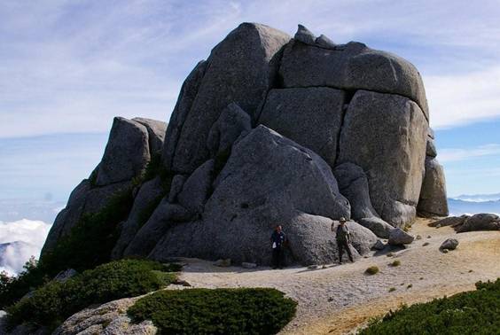 30分の写真・タバコ休憩後、池山尾根ルートで下山する。駒峰ヒュッテを過ぎると素晴らしい展望の天空の散歩を満喫出来た。中でも巨石の自然造形物「駒石」は印象に残った(9:00)。