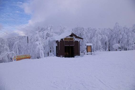 朝9時、蔵王スカイケーブル上の台駅から中央高原駅へ。接続の2本のリフトを乗り継いで中央ゲレンデに上がり、更に2本のリフトを乗り継いで樹氷原コース(コース案内図で標高1,539m)に着く。