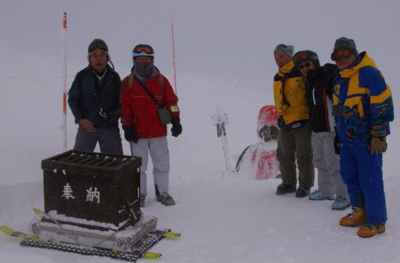 写真@1月14日(快晴)中央ゲレンデにて記念撮影、右から田子、有馬、本澤、原田、小谷、高田和、橋本の各兄