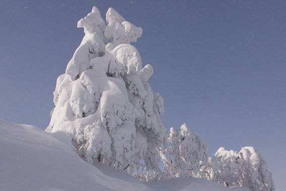 蔵王温泉街に一軒しかない寿司店の味は極上、日本酒も入り話題が盛り上がった。午後はこの快晴を利用して地蔵山登頂を目指すことに決まった。樹氷原のモンスター樹氷を是非とも撮影したかった。田子先輩と原田兄は中央ゲレンデでスキーを存分に堪能したいと別行動となる。
