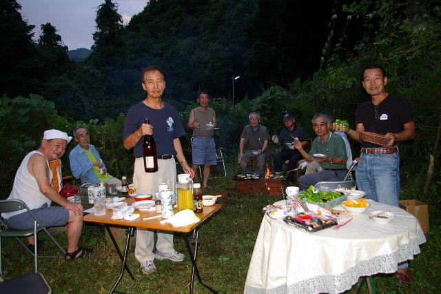 夕刻から庭でバーベキュウ、有馬兄からプレゼントの黒毛和牛肉と芋焼酎「魔王」をたっぷり堪能させて頂きました。(別添写真)