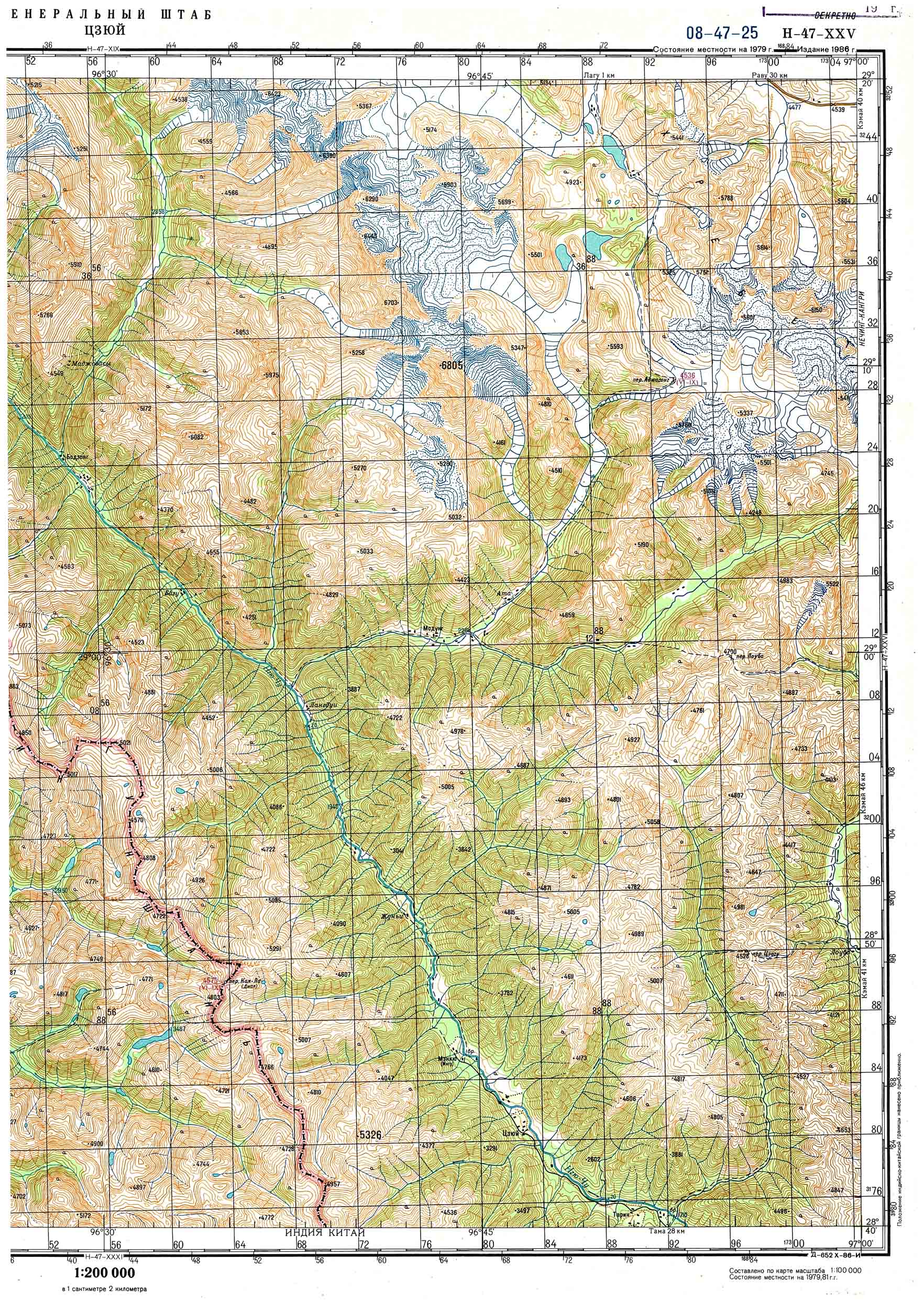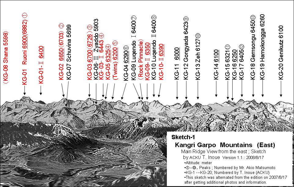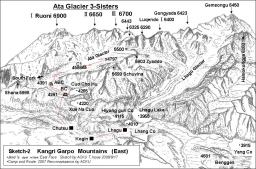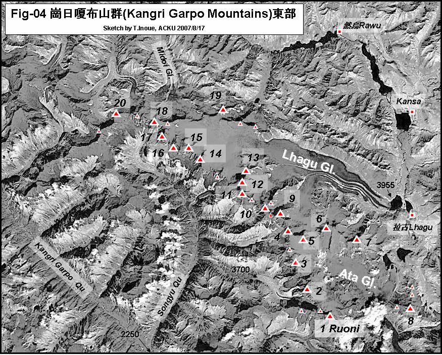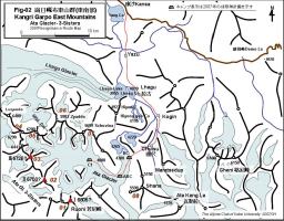崗日嘎布山群東部の俯瞰図