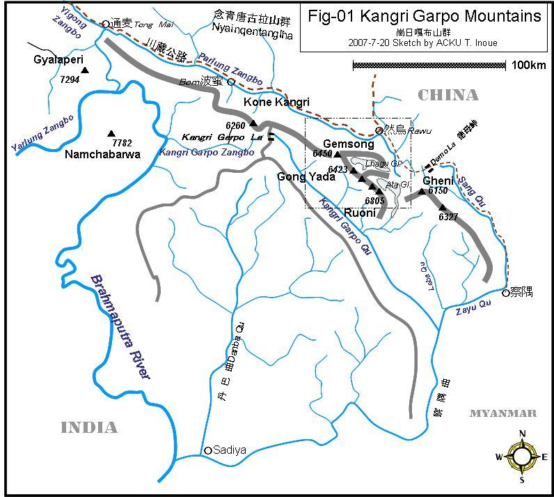崗日嘎布山群の位置