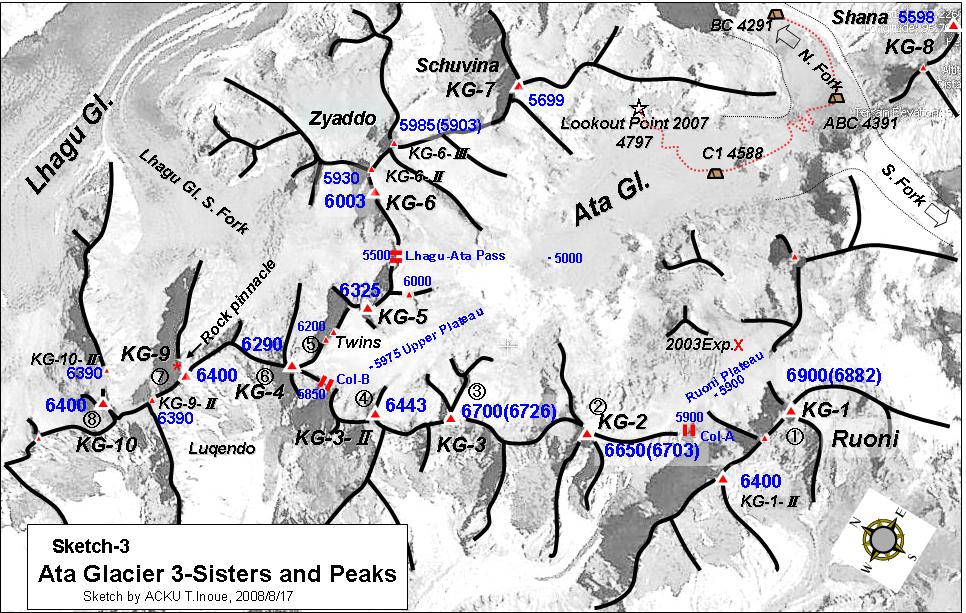 阿扎氷河(Ata Glacier)三姉妹峰