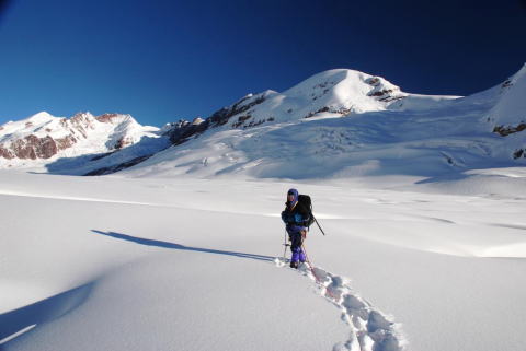 the crevasse-labyrinth and over 2 feet fresh snow covered hidden crevasses.