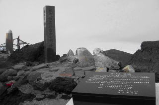 日が変わる頃から風が強くなり、やがて雨が混じってくる。風上では水を含んだ火山灰が飛んできて泥々になる。風がだんだん強くなるので3時に起きだして、テントの中でパッキング、完全装備で外に出て、テントを神社の石垣の陰まで運んでたたむ。4時半ラテ行動で下り始める。風で歩きにくい。9合の小屋で明るくなり始める。元祖七合の小屋の下で近藤が転倒、顔と足を岩にぶつけるが大事に至らなかった。6時50分駐車場到着。