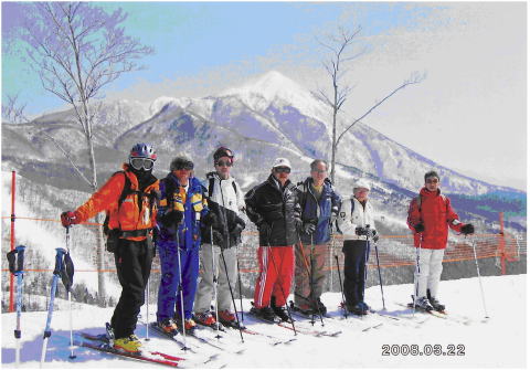 3)速報;今回の春山スキー行は、川畑實先輩のご好意により氏の羽鳥湖別荘に3泊させて頂き、スキー三昧させて貰いました。その上、大先輩に参加者全員の朝晩の食事と美味しい酒の肴(前菜)まで料理して頂きました。この場を借りて厚く御礼申し上げます。