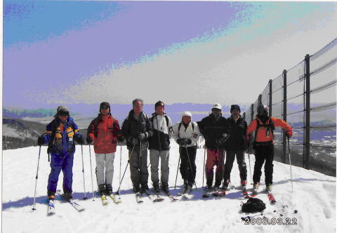 3月21日;朝9時出発、30分でグランディ羽鳥湖スキーリゾートに到着。スキーの達人・川畑先輩の先導でファミリーコースを一滑り。10時30分、豊田兄が到着。