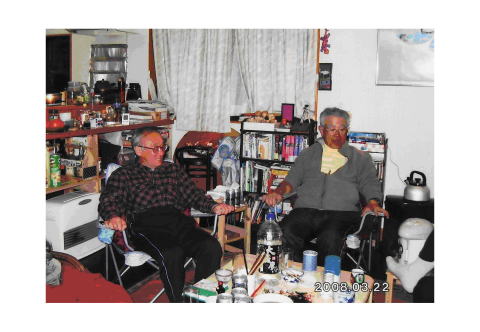 別荘の居間で寛がれる川畑先輩と横山先生(左)。