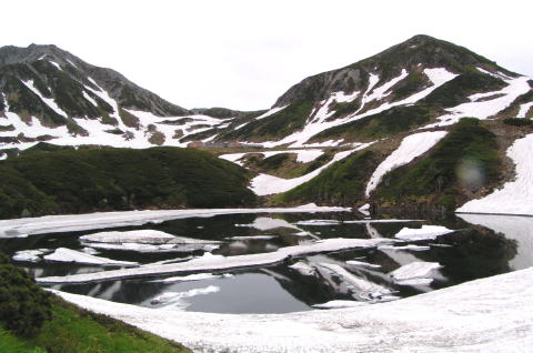 雷鳥荘から室堂ターミナルまで写真を撮ったりしながらのんびり散策。今日は今回の山行で唯一見晴らしのよい日だ。曇り空だが立山を始め周囲の山々はすべてくっきりと見える(写真6)。昨日登った剱岳山頂もちょっと顔を見せている。土曜日なので観光客が多い。ターミナルで富山へ下りるベッタさんと別れトロリーバスに乗る。4時間後帰宅できたが道中何処も雨であった。