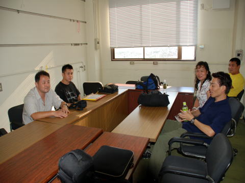 農学部の会議室にて会合に臨む中国地質大学の一行