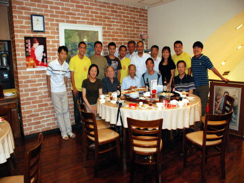 中国での登山活動を長年推進してこられた平井先生、1988年のチェル-山隊長の北口先生、2003年のルオニイ峰遠征時に留守本部を取り仕切っていただいた山形先生、チェル-山隊員の竹内夫妻、2003年ルオニ-峰隊員の香山さん、山岳会理事で東京支部長の大竹口さん、2007年崗日嘎布山群偵察隊隊員に内定している矢崎さんと近藤さん、そして山岳会会長の井上さんが参加しました。中国地質大学・学長からのメッセ-ジと記念品が董教授より山形教授に託さるなど、なごやかに、そして旧交温まる晩餐会を持つことが出来ました。