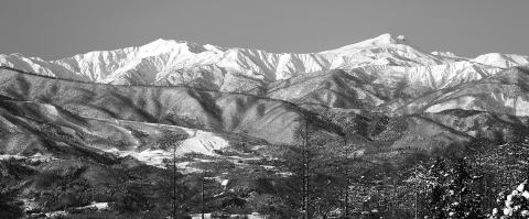 | ↑写真: 鷲ヶ岳から白山(右)と別山 Photo by T.Inoue |