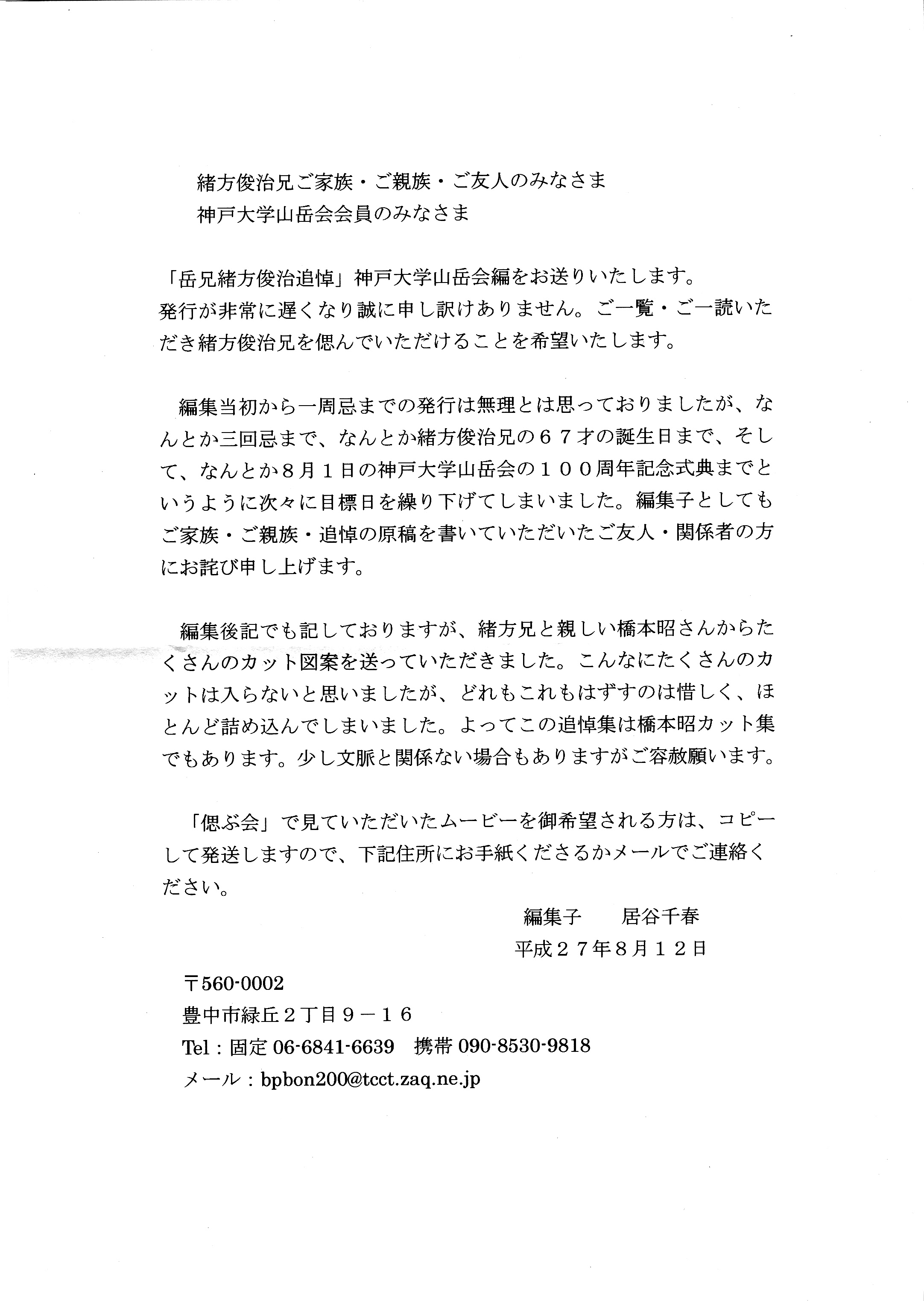 | ◇NO:214 故緒方俊治会員の追悼集発行 (2015/8/16up) |