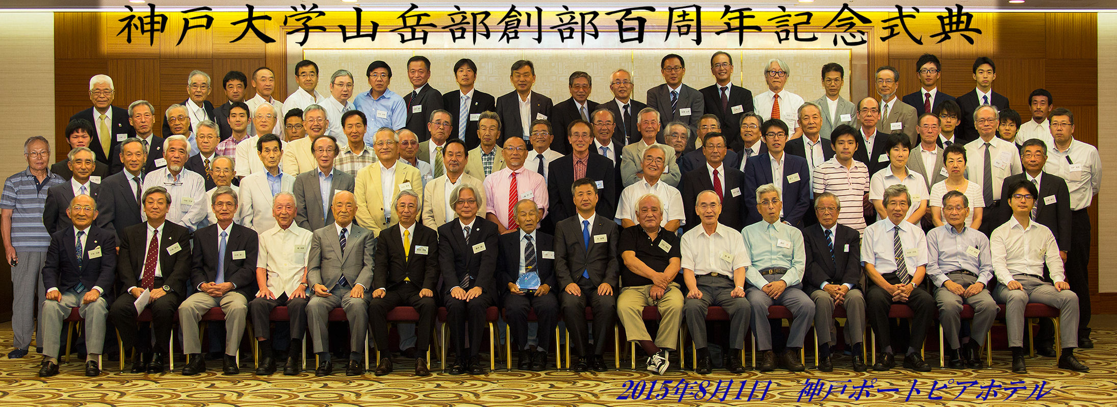 8月1日、神戸ポートピアホテルで開催された100周年記念式典祝賀会は80余名の参加を得だ盛会でした。中国登山協会李豪傑交流部長、福田秀樹前神戸大学長、小林政志日本山岳会会長他、多数の来賓から心温まる祝辞を賜り、和やかな会となりました。